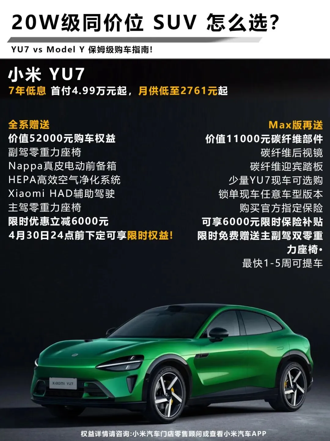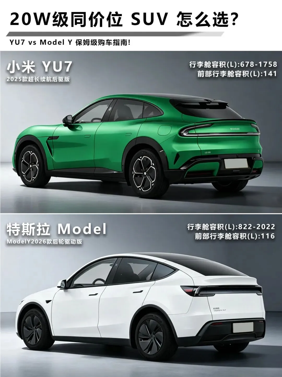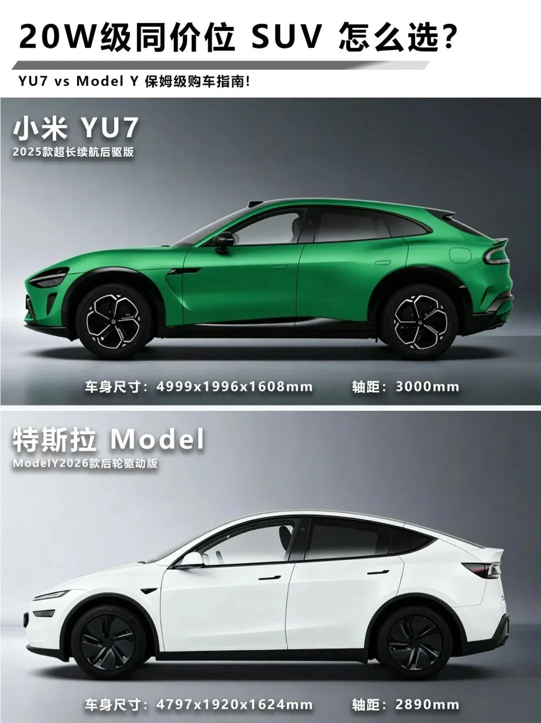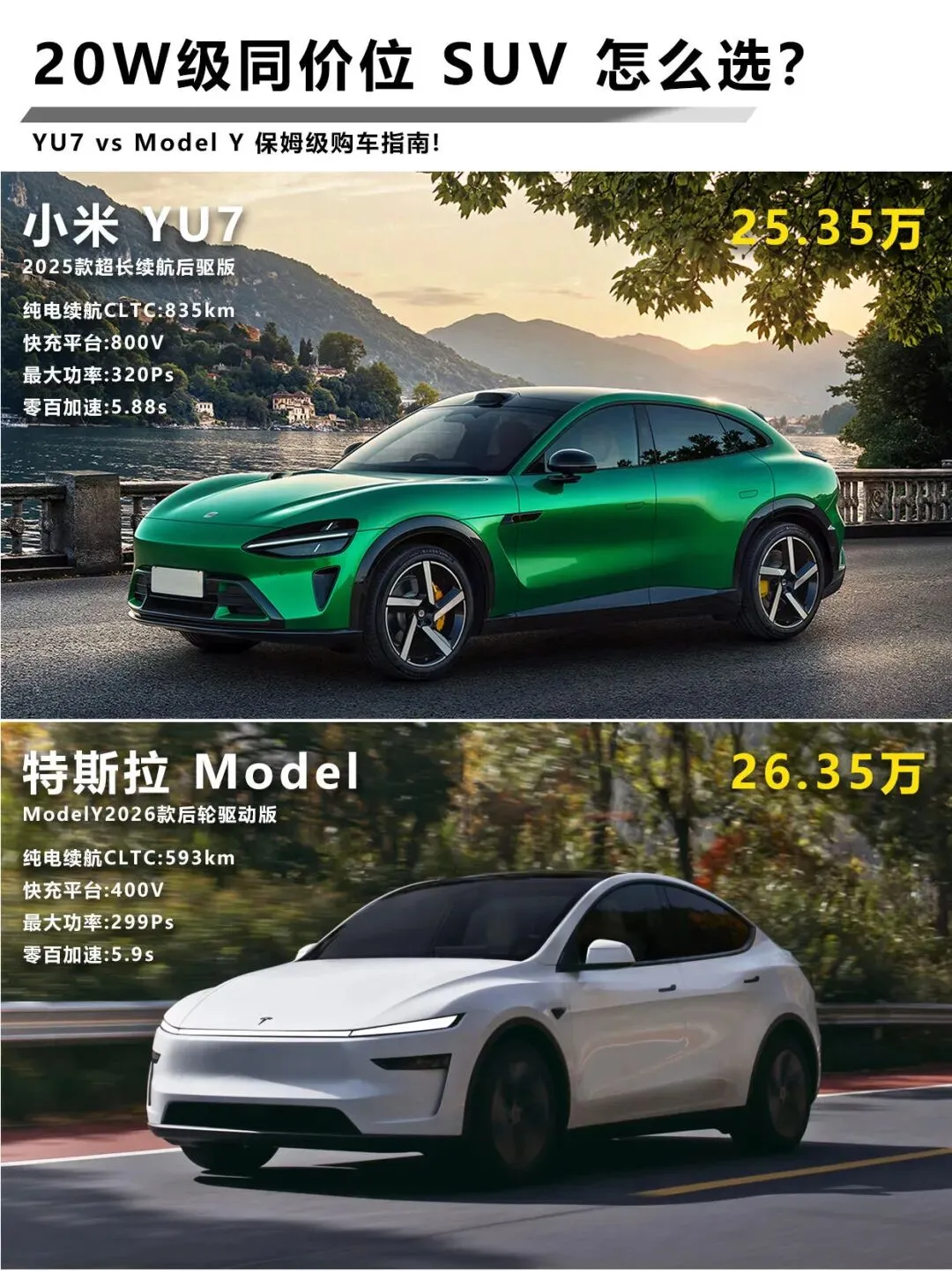 不用再纠结 20-30 万纯电 SUV 怎么选!,这篇保姆级选购指南小米 YU7 vs 特斯拉 Model Y,从参数到权益全维度扒透,看完直接不纠结!