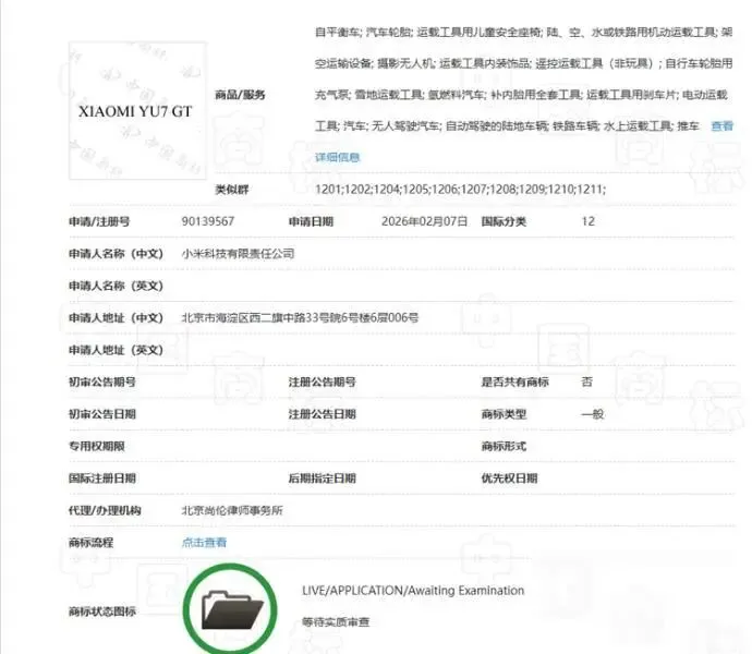 关于这款新车的传闻由来已久,但这一次并非空欢喜。首先映入眼帘的是商标层面的动态,相关申请已经提上日程,这无疑是新车立项的最直接信号。紧接着,更具说服力的“实锤”来自工信部的一纸申报信息。在这份备受关注的文件中,新车的动力参数赫然在列:高达1003匹的峰值马力。这一数据不仅确立了其作为家族高性能版本的定位,更让它在同级对手中显得鹤立鸡群。这不仅仅是数字的堆砌,更是小米展示其三电技术实力的有力证明。