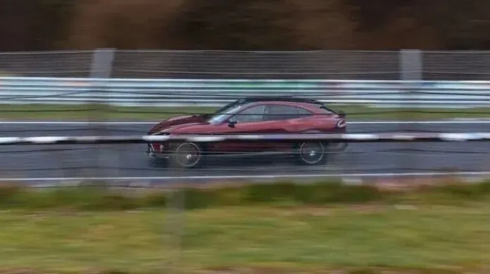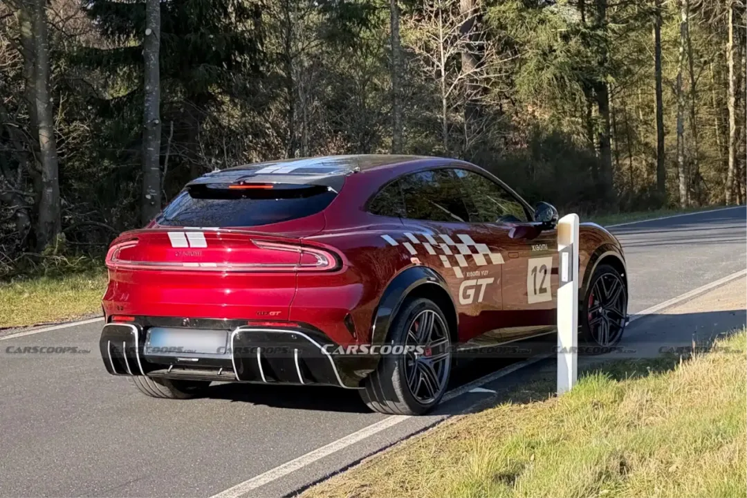 根据工信部第404批公告信息,这台车已经在今年2月完成了申报,然后最近又有一个大动作,3月底的时候,YU7 GT的无伪装实车直接出现在了纽博格林北环赛道上,红色车漆配GT拉花,前铲、后扩散器、巨大的刹车卡钳,那个攻击性一眼就能看出来,这不是一台买菜车。