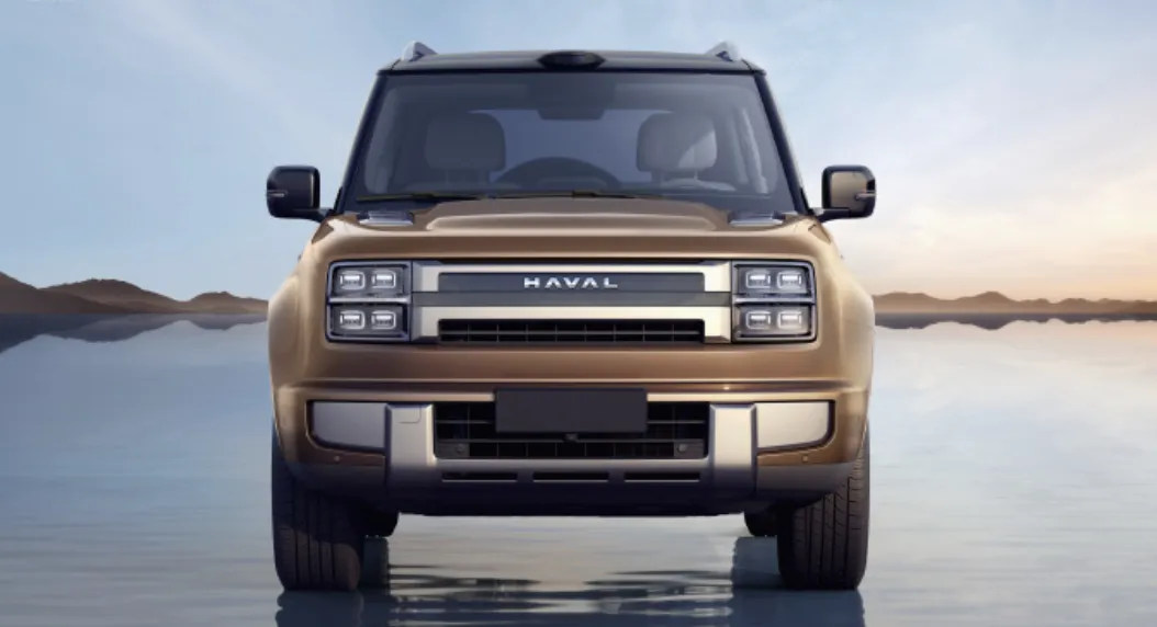 在外观上,新车延续了经典的方盒子造型,直角车身线条、矩阵式LED大灯、贯穿式“HAVAL”标识、外挂备胎及侧开尾门,强化了硬派基因。