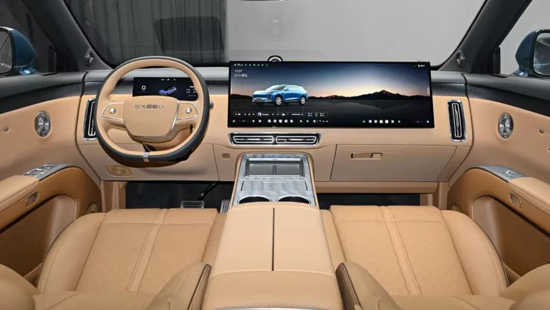 内饰方面,屏幕最亮眼,16:5超宽比例的30英寸6K一体式巨幕,再加上高通骁龙8295P芯片、AI灵犀智舱2.0系统,流畅度拉满之余也增加了娱乐性。车内有90%以上面积的软包裹覆盖,椭圆形双辐式方向盘、24英寸W-HUD,总结来说就是科技感和豪华感兼备。