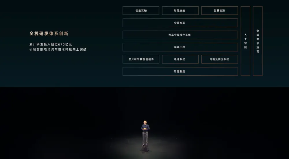这主要体现了供应链创新、先进制造、全生命周期质量、智慧能源服务和全场景用车服务六大方面。同时蔚来也自研了12大核心技术,在技术研发上投入了670亿元。▲蔚来全栈研发体系