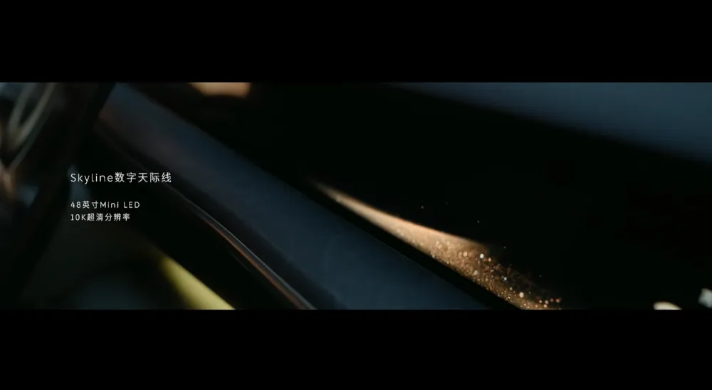 蔚来ES9的前排采用了灵犀岛设计,137个实体按键遍布全车。车辆采用了数字天际线屏幕,采用了48英寸的Mini LED屏,中控屏尺寸为15.6英寸,后排有两块16英寸的专属屏幕。▲蔚来ES9数字天际线屏幕
