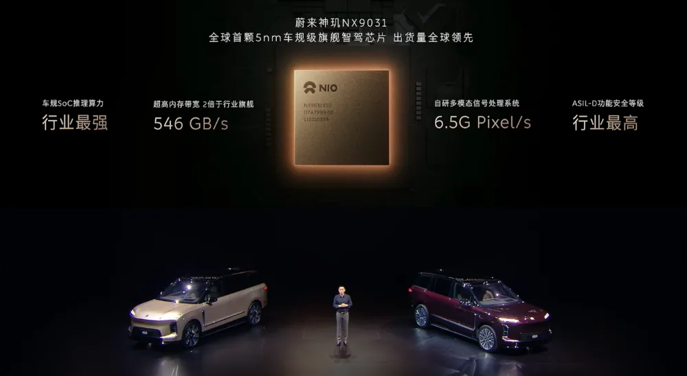 车辆采用了蔚来自研的神玑NX9031芯片,采用5nm制程。这颗芯片对于视觉感知的处理能力非常出色。▲蔚来神玑NX9031芯片
