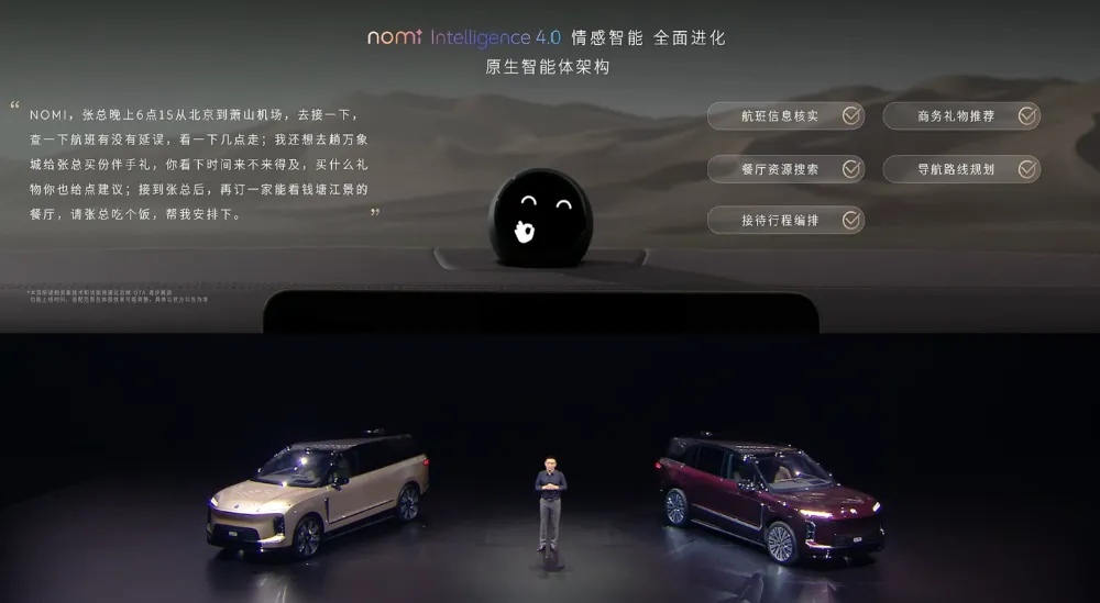 车辆搭载了蔚来全新一代车载语音识别大模型,可以通过nomi打开前备箱,还能让nomi变成一个更加智能的AI助手,既能查询信息也能整理行程。▲蔚来全新一代车载语音识别大模型