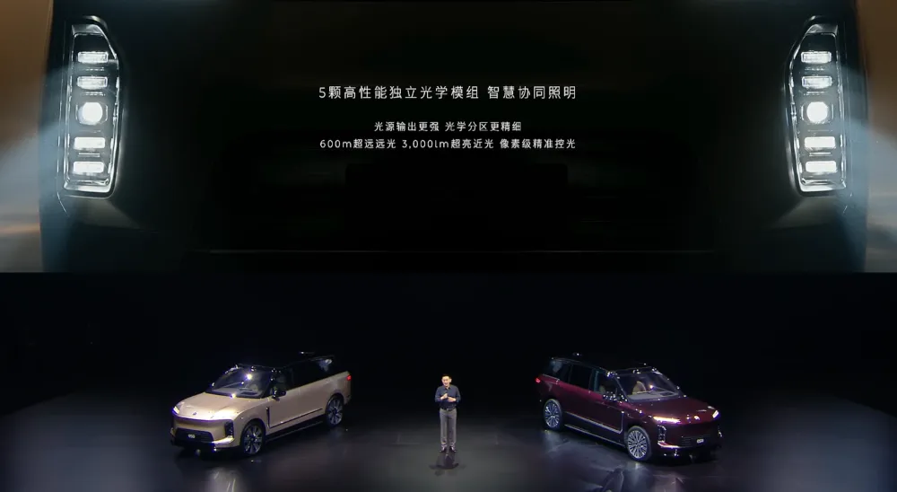 车灯系统也是蔚来ES9上的一个全新升级,车辆的夜间照明距离达到了600米。▲蔚来ES9车灯系统