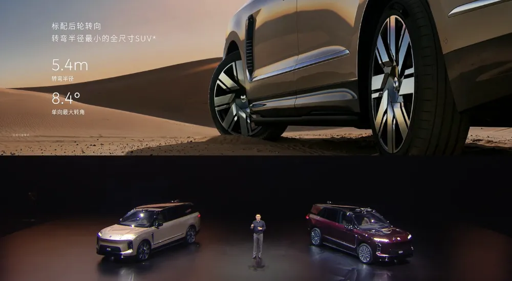 蔚来ES9采用了线控转向系统,同时标配了后轮转向系统,转弯半径仅为5.4m。▲蔚来ES9转弯半径