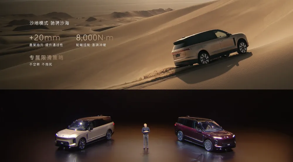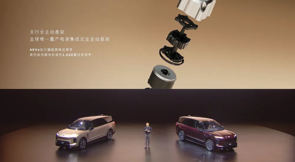 ES9的天行底盘量产电液集成式全主动悬架,无论在什么场景下,车辆都能平稳通过,甚至在极端情况下,车辆还有弹跳脱困能力。▲蔚来ES9搭载天行全主动悬架