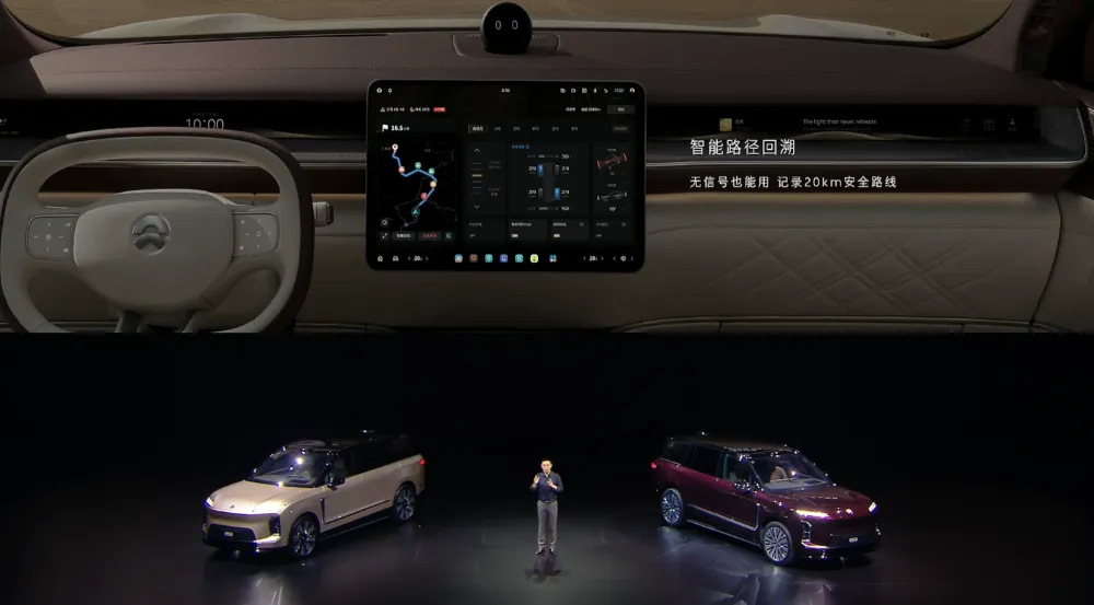 车辆的操纵系统也有很好的表现,在沙地、湿滑路面都能从容驾驶,避免车辆驾驶失控。在野外没有信号的情况下,车辆还支持20km的智能回溯。▲蔚来ES9智能回溯功能