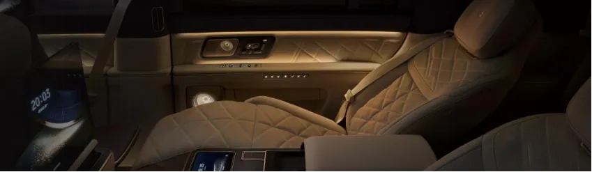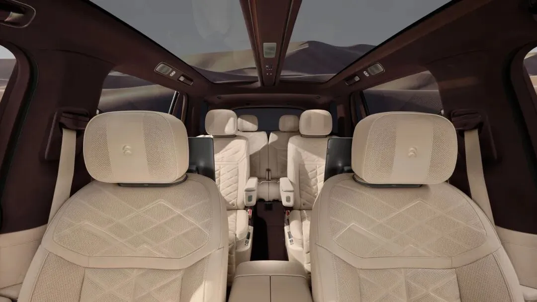 ES9的飞航行政座椅采用蔚来自研高端座椅平台。二排飞航零重力行政座椅,长达2.3米的连贯椅面配合覆盖全身42点全维深层按摩系统,包括行业首创20点机械足底按摩,带来极致身心放松。座舱全球首发阵列式LC智能隐私调光车窗,拥有行业最快变色速度,原创的智能行政中岛配合顶级双16英寸专属行政屏、高清视频会议系统及专属磁吸茶台,让商务体验高效而得体。