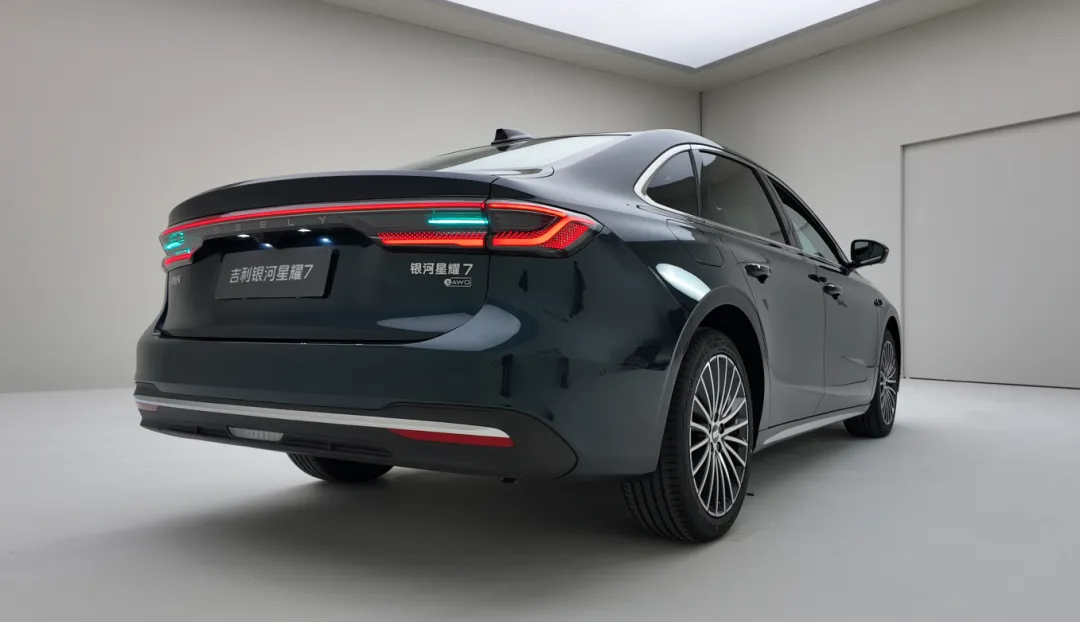 吉利银河3月17号正式发布了星耀7的官图,定位中型豪华电混轿车,官方给了一个标签叫「全球首款四驱中级电混轿车」。