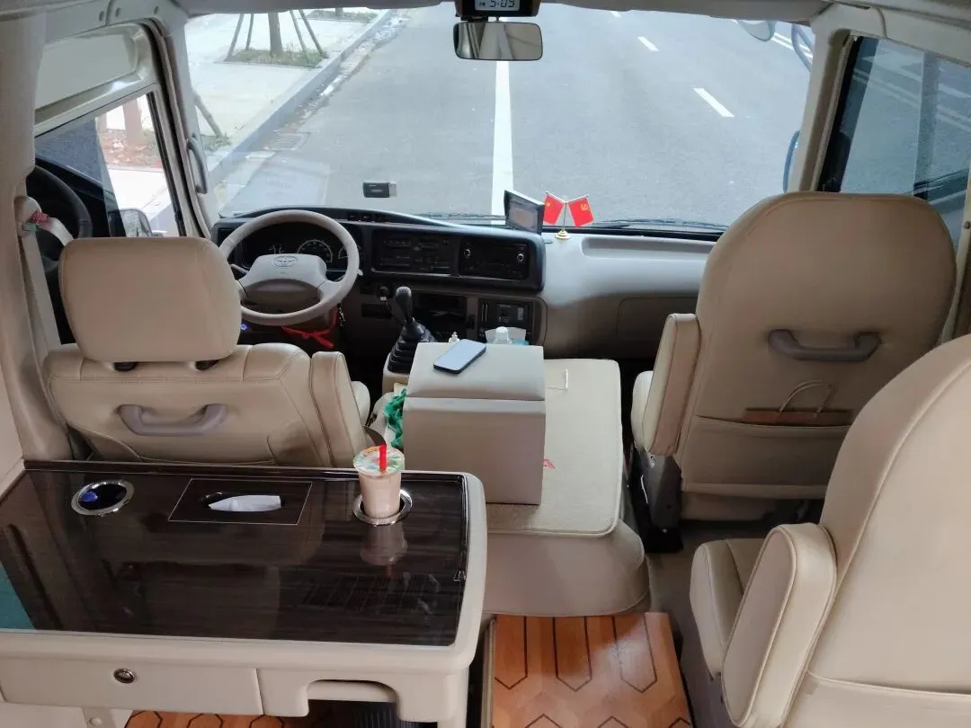 考斯特座椅可旋转对坐,中间留出过道,甚至能加装简易茶几。司机会把车开得特别稳,过减速带几乎没感觉,老人和孩子可以在车上安心午睡。
