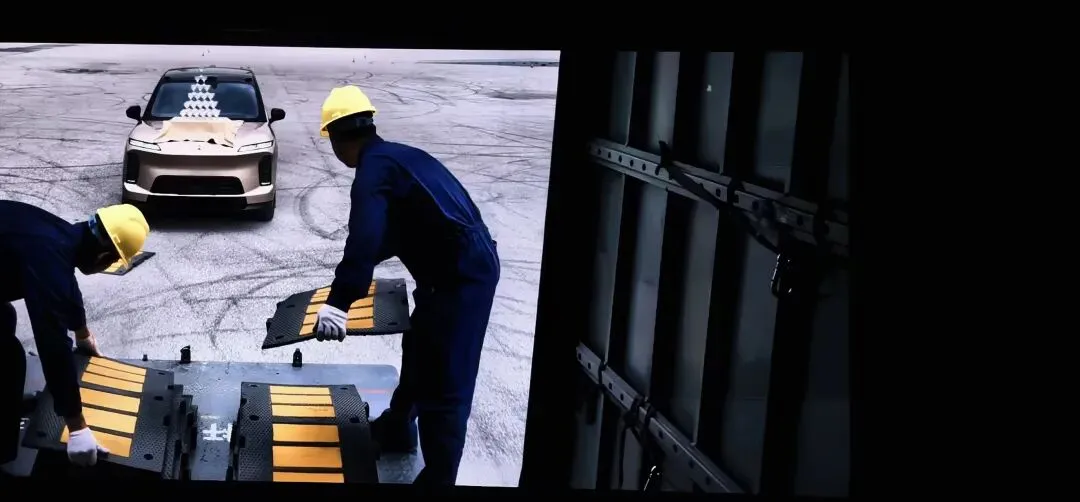 蔚来ES9在搞香槟塔的时候,很多同行认为那些减速带是特意设计的,所以蔚来这次搞了一个随机扔减速带让ES9行驶来证明天行底盘(双腔空悬+外置阀门CDC)的优秀。