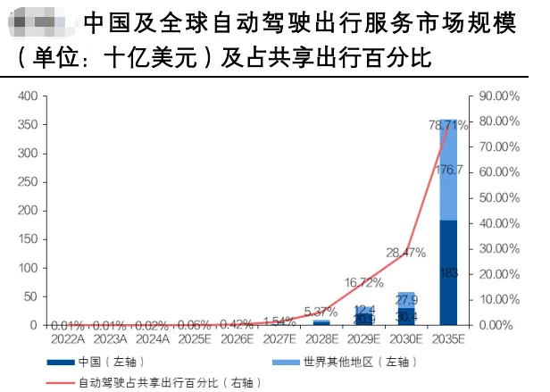 - 市场规模: 根据如祺出行招股书数据,预计2030年中国Robotaxi市场规模将达到4888亿元,2024-2030年复合增速高达247.0%。全球市场方面,2030年规模有望超过2万亿美元。
