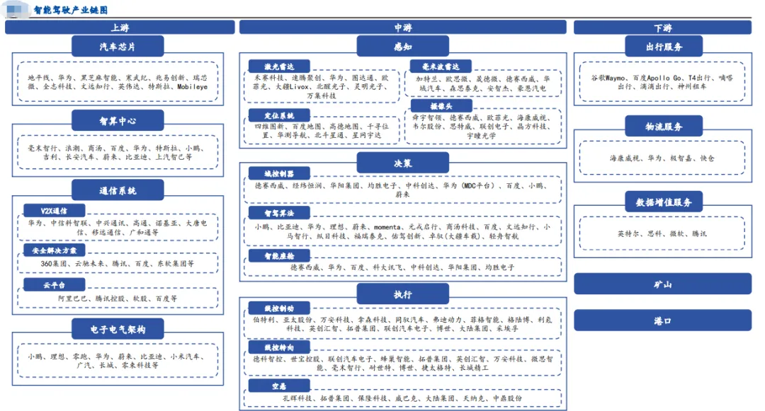 | 中游 | 40%-50% | 整车制造与解决方案 | 百度萝卜快跑 |