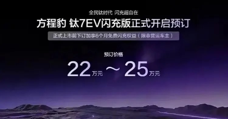 日前,方程豹官方宣布,旗下钛7 EV闪充版将于4月正式上市。该车此前已开启预售,预售价区间为22万至25万元。与此同时,方程豹首款轿车(网传命名:镁7)也将在4月北京车展完成首发亮相,官方表示新车“好看、好玩、好操控”,并确认将搭载闪充技术。