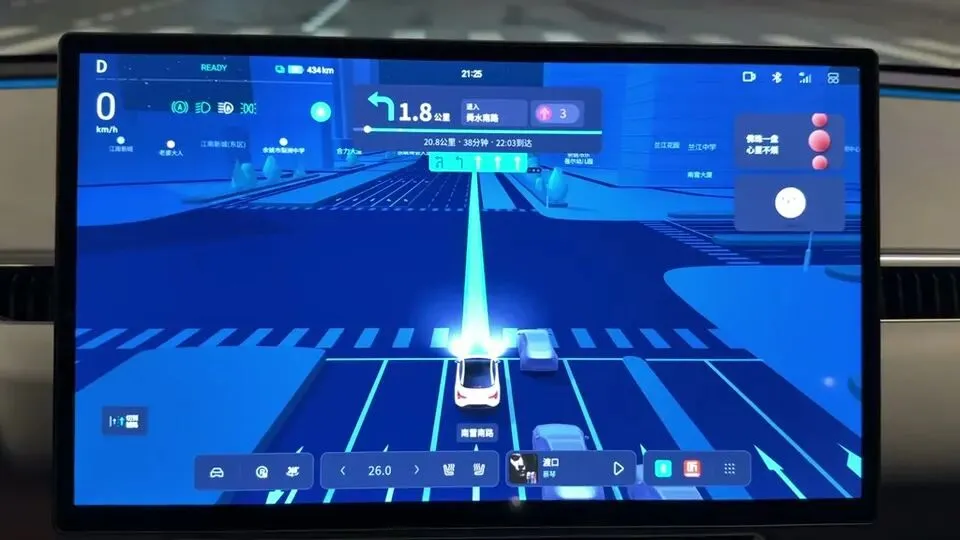 导航界面、车辆信息、各种功能都在这块屏幕里完成,显示的信息非常全面。