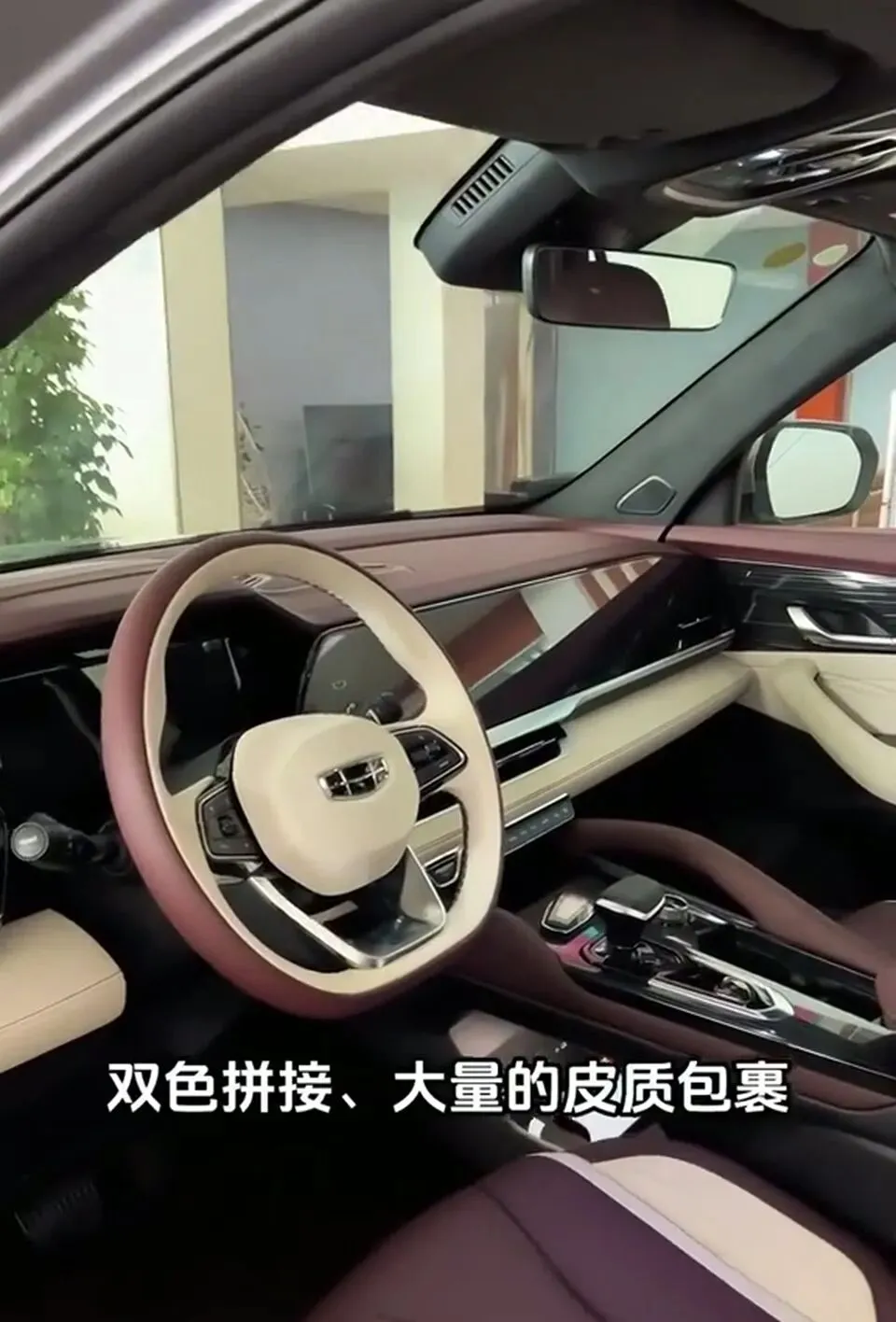 双色拼接、大量皮质包裹,再加电子档杆和三块大屏。