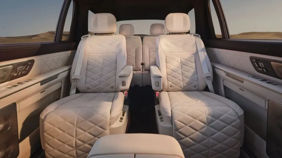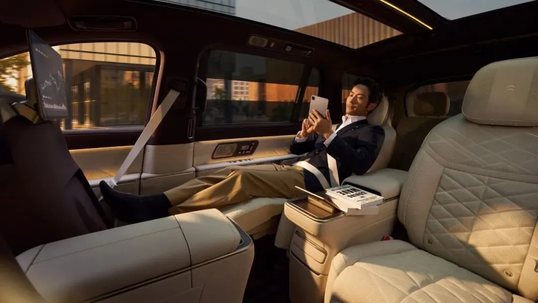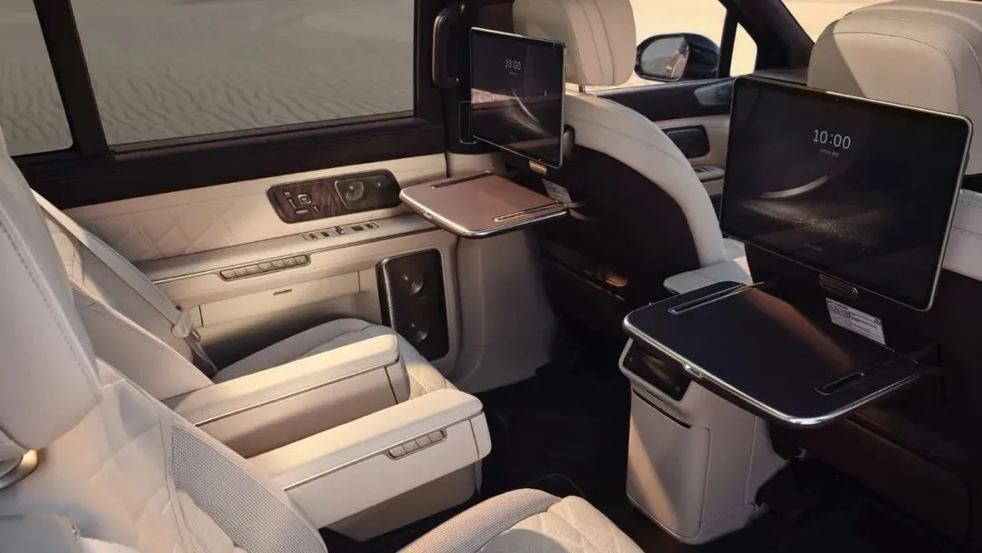 ES9的飞航行政座椅采用蔚来自研高端座椅平台。二排飞航零重力行政座椅拥有长达2.3米的连贯椅面,提供42点全维深层按摩系统,并推出首创的20点机械足底按摩。座舱还发布阵列式LC智能隐私调光车窗,变色反应速度非常快。二排舒适性还体现在原创的智能行政中岛上,它与双16英寸专属行政屏配合,搭载高清视频会议系统,另外还提供专属磁吸茶台。