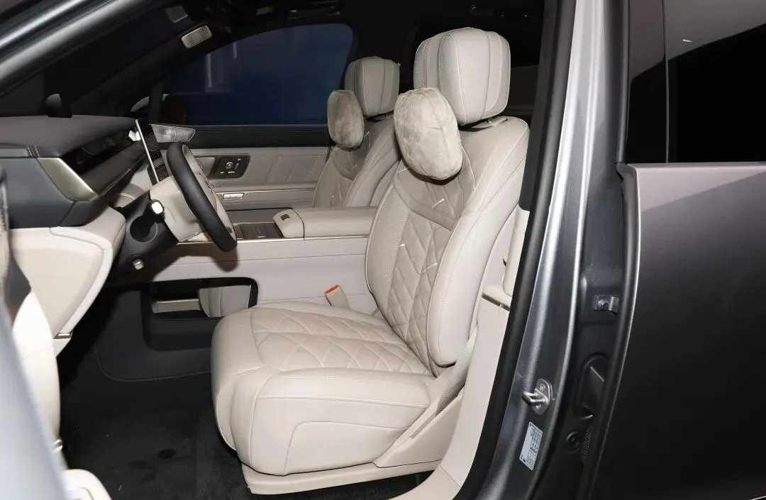 坐进去第一感觉是安静。不是死寂,是风噪、胎噪都被压住了。二排“天空岛”把中控台和扶手箱抬高,形成天然隔断;但扶手箱能电动下沉,变成小桌板,开会时放笔记本刚合适。零重力座椅带脚托按摩,不是噱头——我坐了20分钟,小腿没发麻。