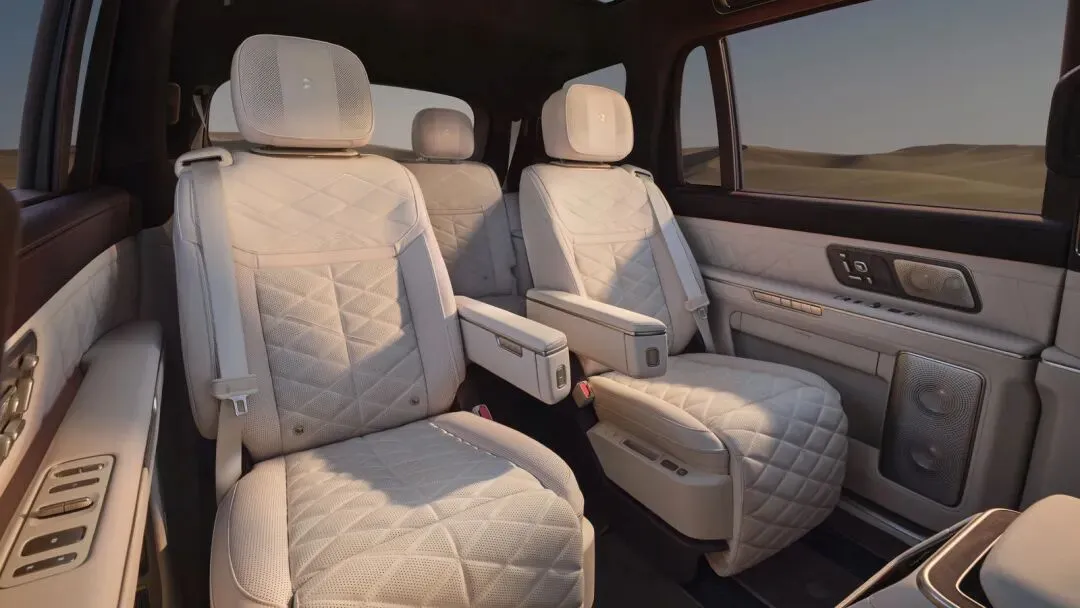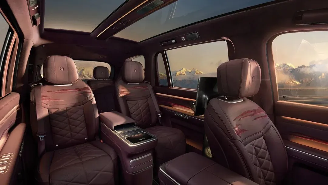 为进一步强化舒适体验,新车加入Nappa真皮、真木饰板以及融入山水纹理的刺绣元素;九霄天琴9.2.4.8沉浸声系统拥有47个扬声器、首次采用100%纯钻石“天琴钻石高音”单元;120km/h高速行驶时,车内噪音仅59.2分贝;全球首个获得“三杜比”认证的座舱影院(杜比全景声、杜比视界及动态视频增强);智能雾化玻璃支持分区控制,后排乘客可根据需求随时切换隐私、采光或隔热模式。