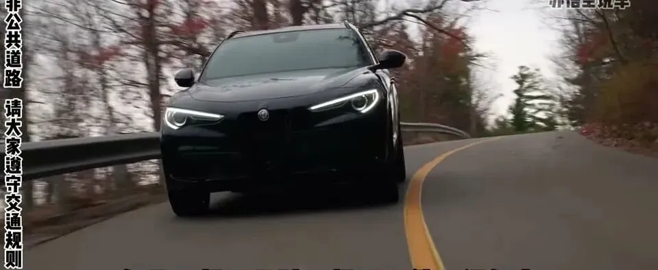 黑色阿尔法罗密欧SUV行驶在弯曲道路上