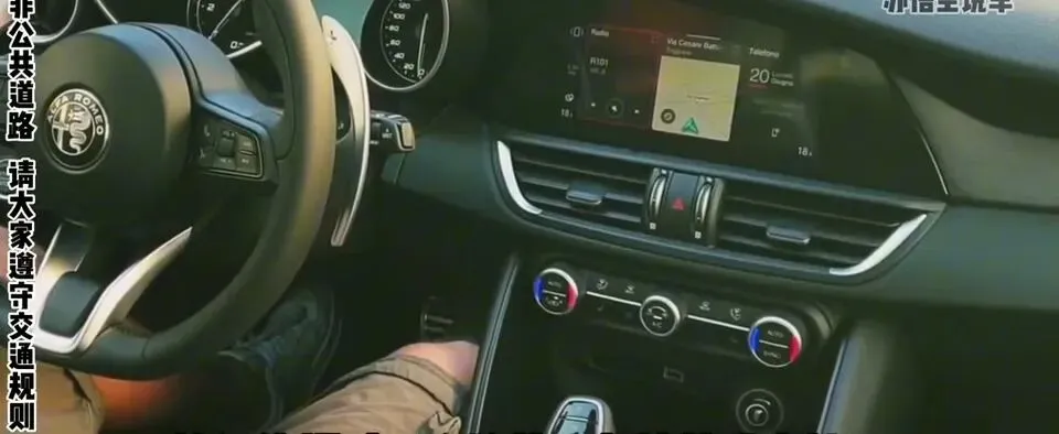阿尔法有着很有特色的换挡体验。别的车拨片很多时候只是辅助升降挡,它这个拨片几乎可以替代挡杆绝大多数作用。解锁、点火、拉拨片进D挡,等红灯时两个拨片一起拉进空挡,再拉又能回D挡,哪怕在倒挡也能通过拨片回到D挡。说实话,除了小众以外,它真是浑身都是戏。