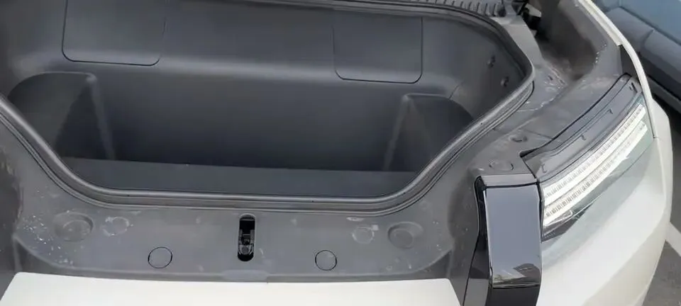 它这个前备箱还有个我比较认可的点,就是开口高度有所降低,搬东西时不那么别扭。容积不算特别大,但盖板下面还做了额外储物空间,收纳思路是对的。所以这台车给我的感觉就是,设计师不是单纯想做个“酷”字,而是想让你在日常生活里真能用上几分。