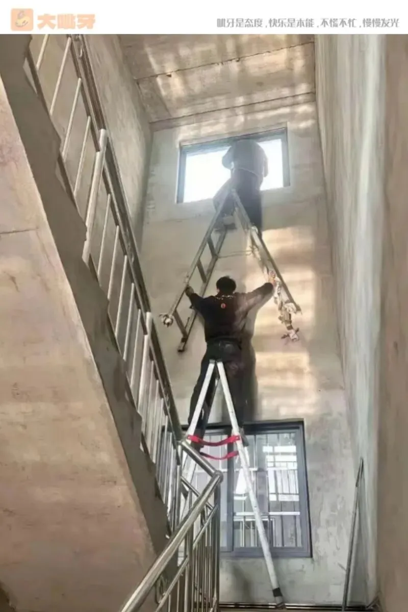 楼道里的“叠梯大法”,高空作业玩出新花样