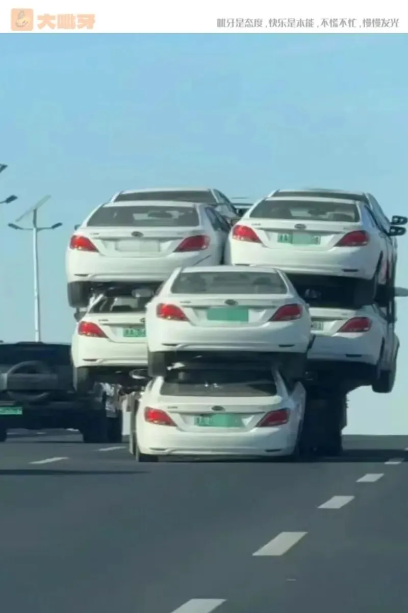 马路惊现“汽车塔”,这画面太有梗了