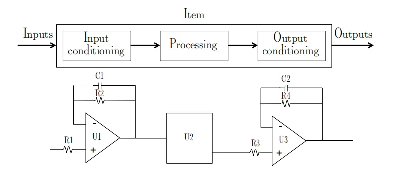 1. 输入调理级:通常为模拟电路,将来自环境或其他部件的模拟输入适配至处理级要求的输入范围;