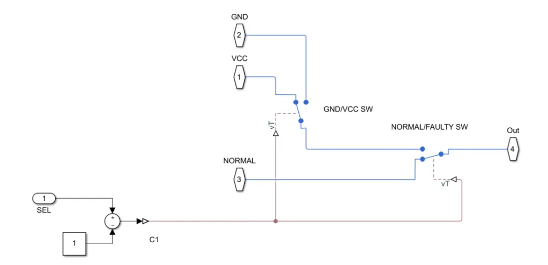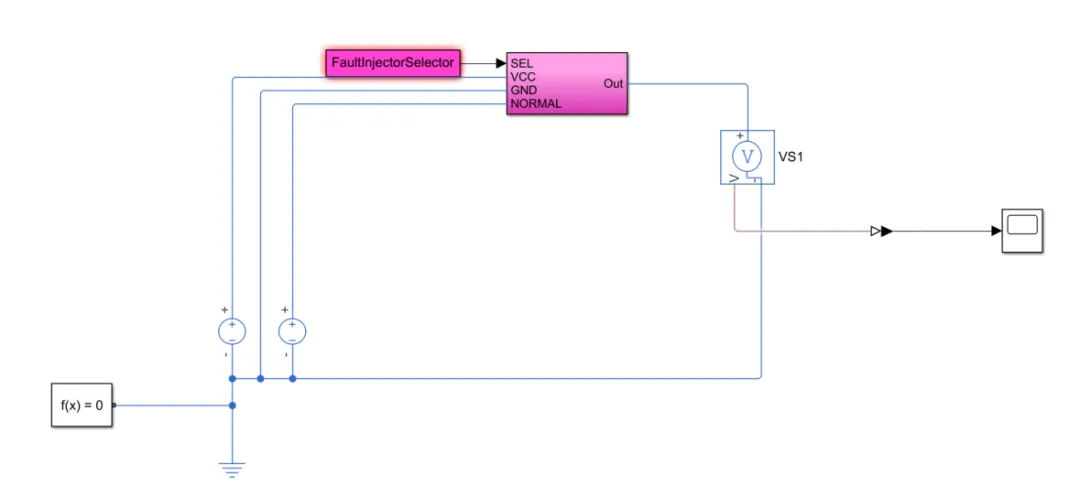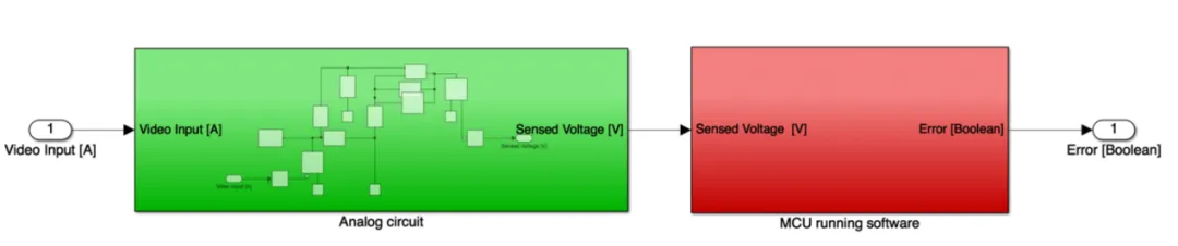 输入级分析对输入级每种失效模式执行SPICE仿真,使用设计人员提供的负载,计算故障输入级提供给微控制器的输入,完成故障从输入级到微控制器输入的传播。之后,Simulink模型运行嵌入式软件,分析每个故障微控制器输出(可来自仿真注入)对应的无故障输出级SPICE仿真,观察整个部件对输入级故障的响应。