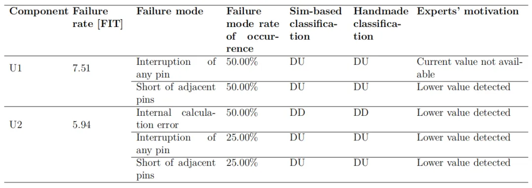 U1、U2等集成电路的失效模式统一归类为危险可检测(DD),理由见3.5.3节。