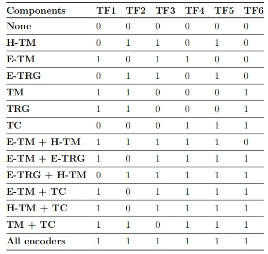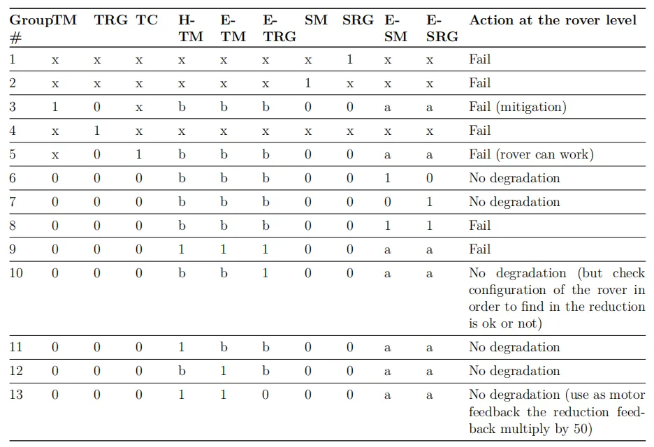 牵引子系统分为6个相同子域,每轮最多10个组件,1024种组合归为13 组故障,见表3.10。