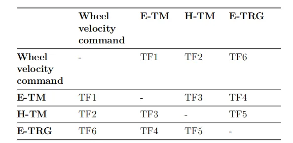 一级检测算法(牵引)6个比较逻辑,两两比对:指令、E-TM、H-TM、E-TRG,共C (4,2)=6种组合,见表3.11。差异超限则置位标志(TF1~TF6)。