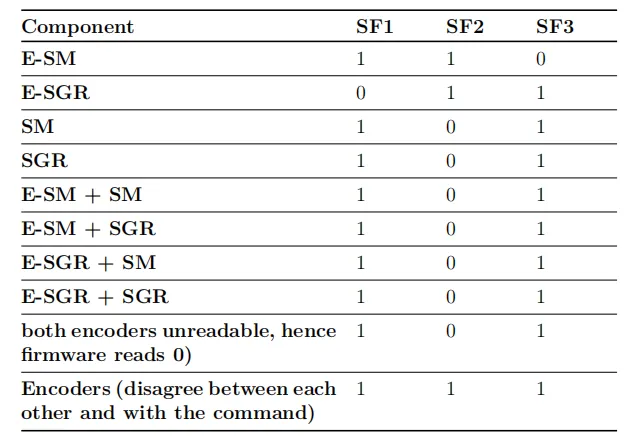 转向子系统3个检测标志(SF1~SF3),部分故障无法区分,统一判定并停车。