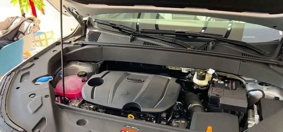 吉利博越L发动机舱展示,介绍了1.5T发动机。