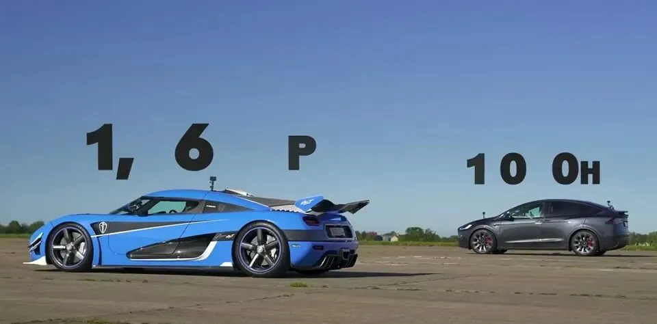 RS对上特斯拉Model X Plaid,蹦直线。
