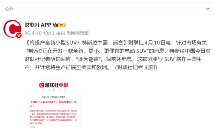 对于该消息,目前特斯拉中国方面对财联社进行了回应,明确该消息为谣言。