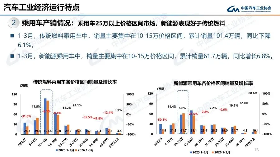 1-3月,销量排名前十位的轿车生产企业共销售146.5万辆,占轿车销售总量的68.7%。在销量排名前十位的轿车生产企业中,与去年同期相比,上汽股份和东风有限(本部)销量呈不同程度增长,其他企业销量呈不同程度下降。