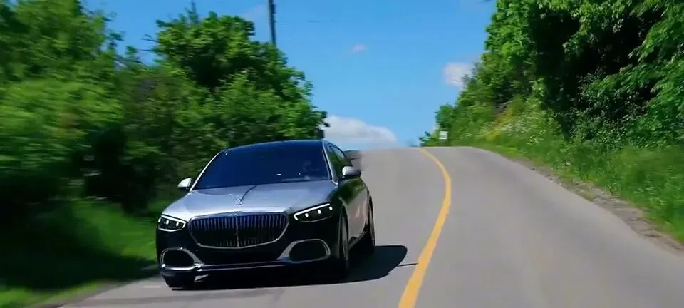 迈巴赫S级轿车行驶在路上,尽显奢华。
