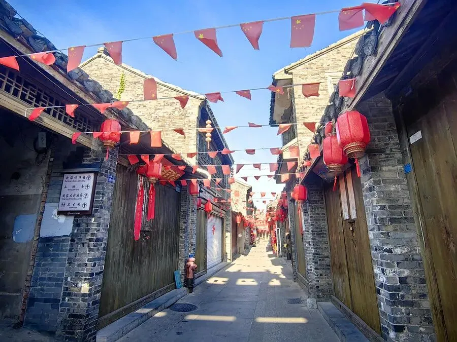 (看看这巷子宽度,板车得侧身,轿车?想都别想。但挂上彩旗、灯笼,老街的烟火气一下子就活了)