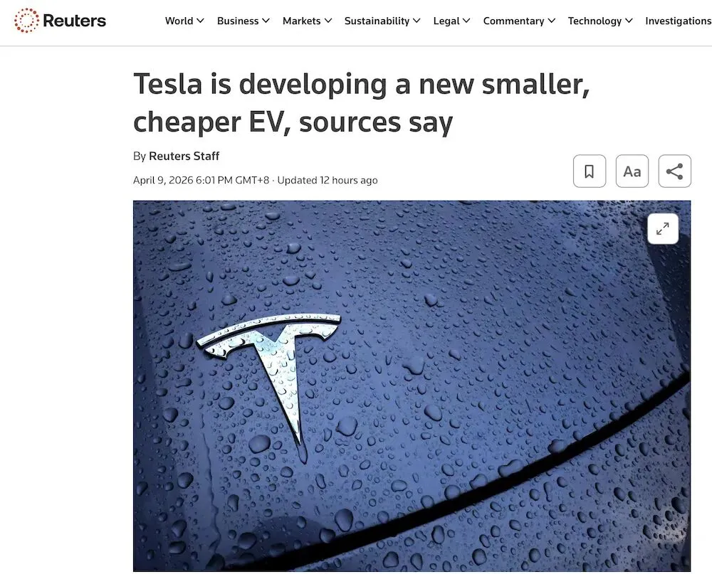 4月10日,针对市场有关“特斯拉正在开发一款全新、更小、更便宜的电动SUV”的消息,特斯拉中国明确回应:“此为谣言。”
