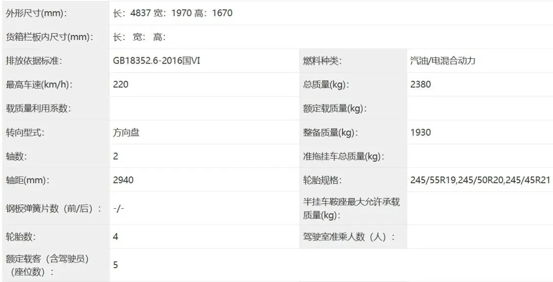这是中型SUV,它的长宽高为4837mm/1970mm/1670mm,轴距为2940mm。或许朋友们会发现,这尺寸数据甚至比起长安启源Q07还更大一些,特别是轴距,没错,就是更大;只能这样说:两车的风格不同,一个是标准中型SUV,一个属于轿跑SUV,加上长安启源Q07也上市不少时间了,到时换新时可能也会加大尺寸。一些细节上,长安启源Q06的最高车速是220km/h,拥有245/55 R19,245/50 R20以及245/45 R21三种轮胎规格。