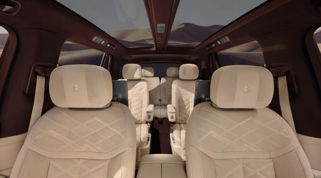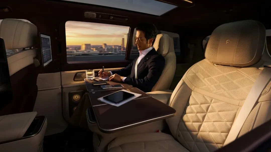 其飞航行政座椅采用蔚来自研高端座椅平台。二排飞航零重力行政座椅,长达2.3米的连贯椅面配合覆盖全身42点全维深层按摩系统,包括行业首创20点机械足底按摩,带来极致身心放松。座舱全球首发阵列式LC智能隐私调光车窗,拥有行业最快变色速度,原创的智能行政中岛配合顶级双16英寸专属行政屏、高清视频会议系统及专属磁吸茶台,让商务体验高效而得体。
