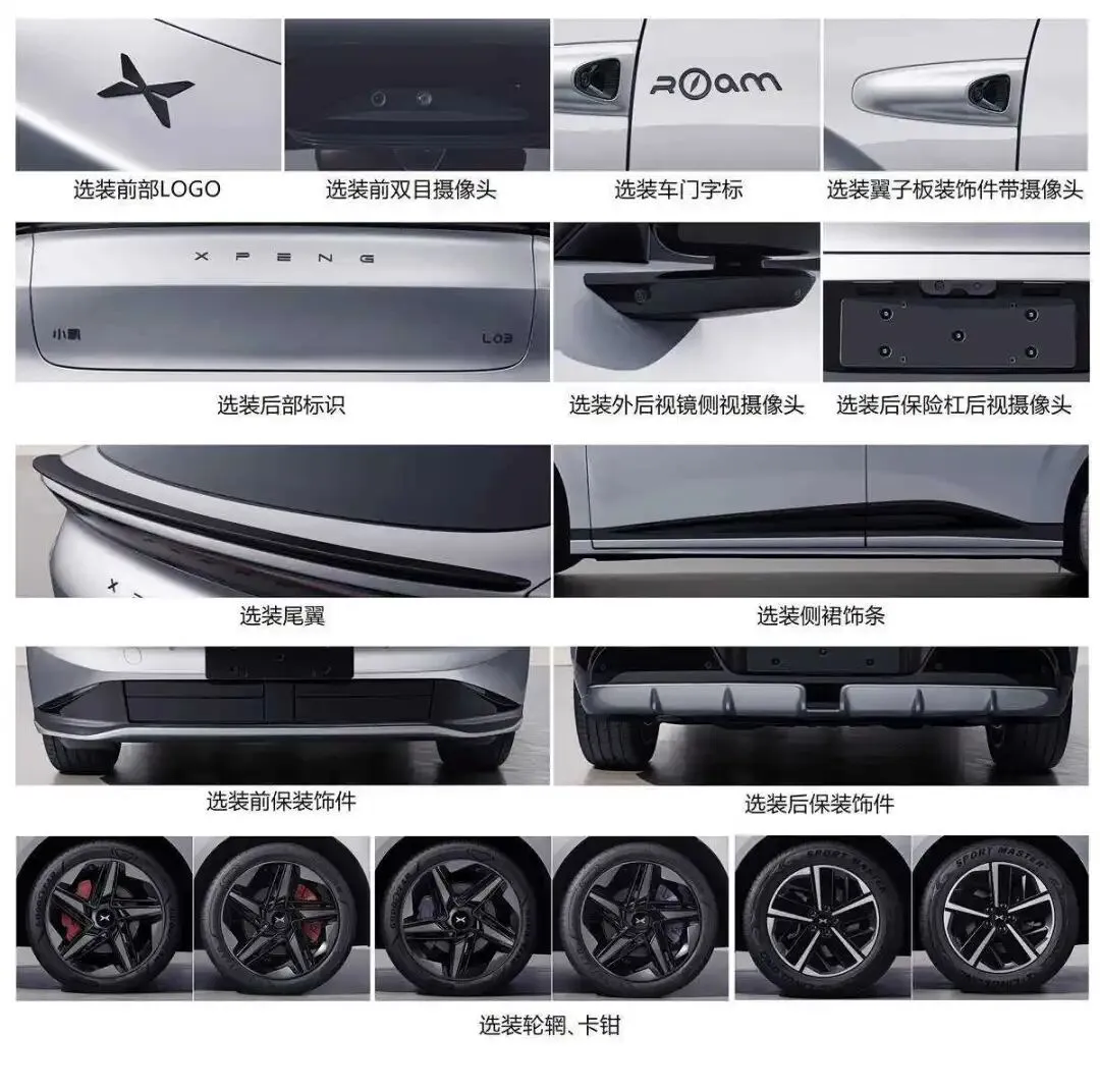 从申报图看,L03的车头一眼就能认出是MONA家族的成员,那个T字形大灯实在太有记忆点了,晚上开出去绝对不用看车标就知道是谁家的。不过因为要压风阻,机盖比M03下压得更明显,两侧还做了隆起,像绷着肌肉的肩膀,看着就挺有劲儿。而且它继续走纯视觉智驾路线,没上激光雷达——这招挺聪明,成本压得住,算力堆上去,实际体验并不会比那些贵好几万的车差。侧面是这台车最值得聊的地方。它用了溜背设计,说明小鹏很清楚,买这个价位SUV的年轻人,第一眼看的是帅不帅,第二眼才是空间够不够用。半隐藏式门把手比轿车版那个全隐藏的更实用,冬天不怕冻住,风阻也没牺牲多少。轮圈样式确实好看,但按照小鹏一贯的套路,你心里得有个数——申报图里那套帅气的轮圈大概率要加钱选装,标配的尺寸会小一号。后视镜倒是大概率给无边框的,这点还算厚道。尺寸上,长宽高4650(或4672)/1920/1600mm,轴距2850mm。什么概念呢?车长比G6短了接近一拳头,但轴距只少了5厘米,这意味着前后悬更短,四个轮子更靠近 corners,转弯半径会更小,市区掉头、钻胡同都更从容。尾部设计几乎和轿车版划清界限了。贯穿式尾灯现在满大街都是,但L03在两侧加了导流槽——这玩意儿通常只出现在车头或者侧裙,放尾部的真不多见。倒不是为了好看硬加,它能梳理车尾紊流,高速跑起来更稳,也能稍微省点电。牌照框被挪到了保险杠下方,中间一大块留白,干干净净的,看着就舒服。不同配置的细节区别主要在外观件上,尤其是轮圈造型,标配的朴实无华,想好看就得掏钱选装,这已经是小鹏的“保留节目”了。配色方面,申报图里那台紫色的很扎眼,还记得MONA M03上那个罗兰紫吗?选装价2999,但限时免费送,估计L03也会把这个颜色当主打色,年轻用户确实吃这套。