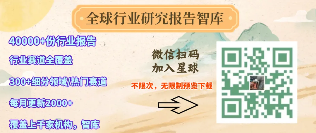本篇报告可以通过扫下方知识星球下载!本页面仅展示少量报告,需要下载报告的朋友,可以扫下方二维码付费成为会员。4万+份完整版报告,随意下载,不受限制,报告涵盖全行业,更新的报告都是行业最新最快最齐。