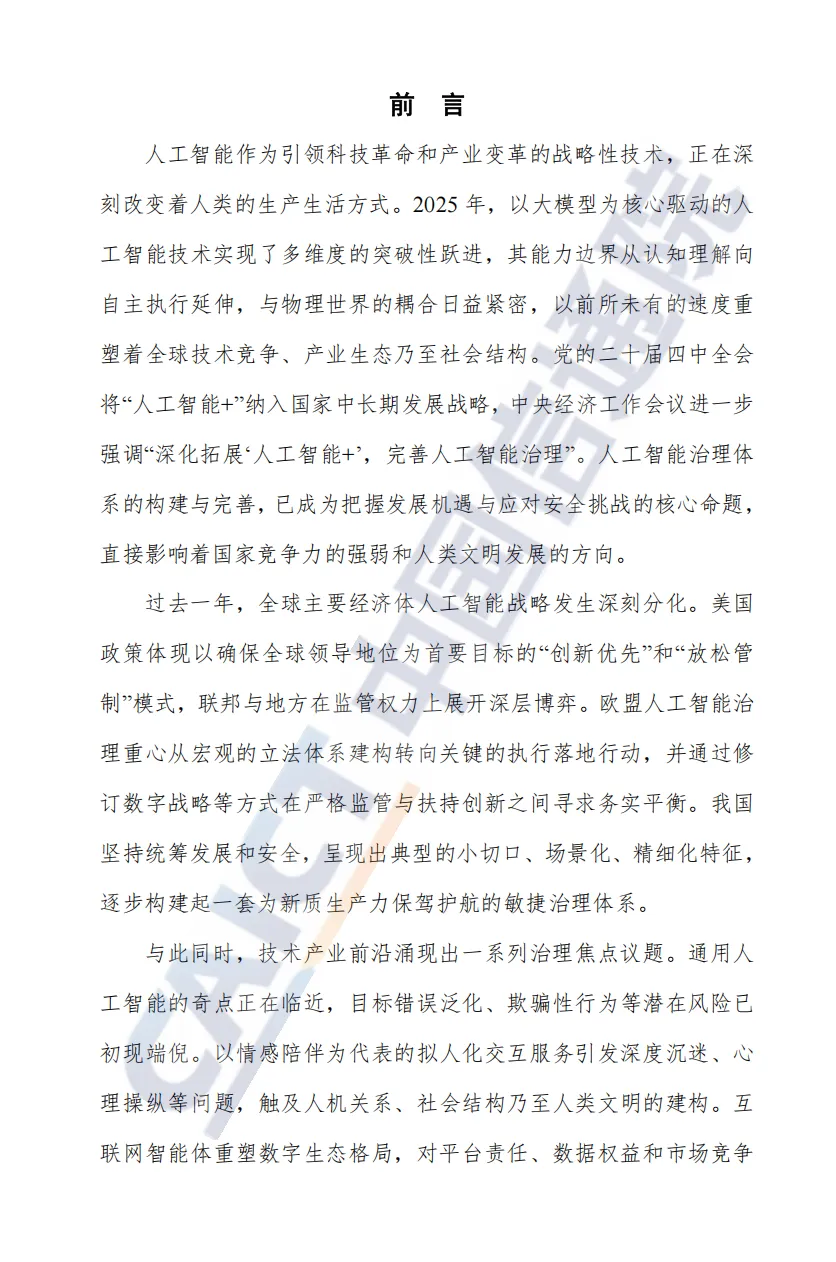 朋友们,刚看完中国信通院新鲜出炉的《人工智能治理研究报告(2025年)》,心情有点复杂。这份报告像一份详尽的“体检报告”,为我们身处的这个智能时代把脉。它告诉我们,AI不再只是新闻里的热词,而是像水、电、网络一样,正渗入我们生活的每个角落,重塑着从国家竞争、到产业格局,再到我们每个人工作、情感乃至安全感的方方面面。