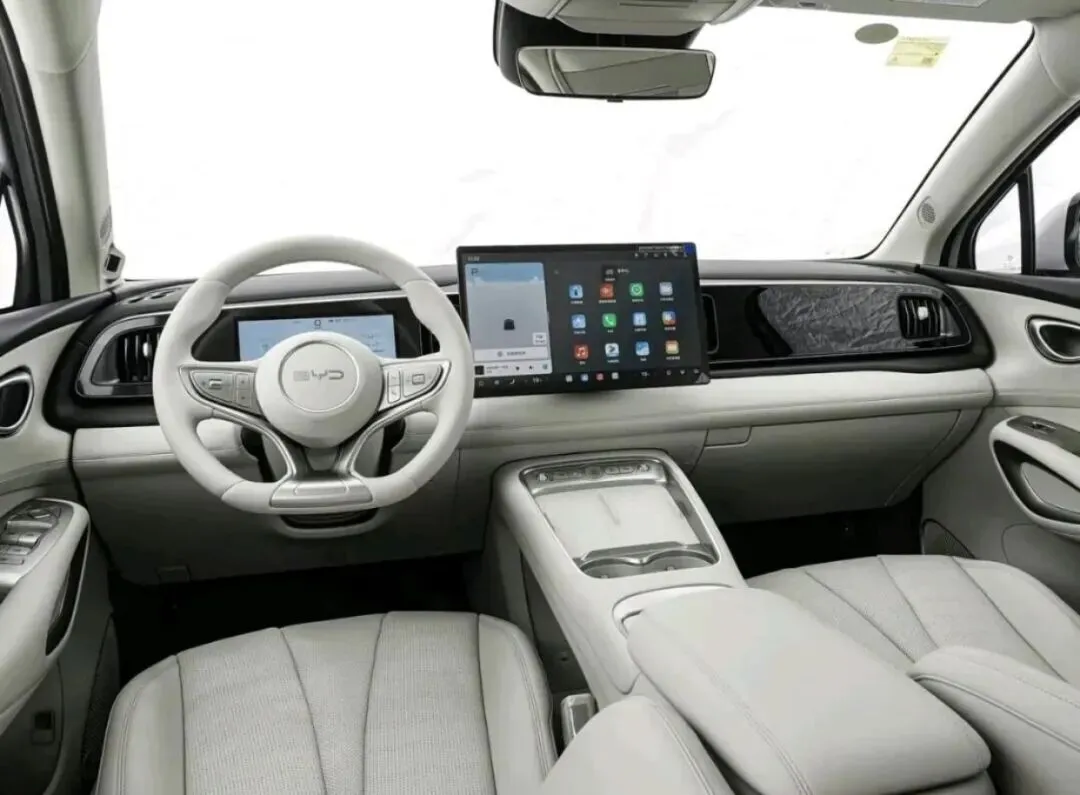· 中控:15.6英寸自适应旋转悬浮Pad,搭载最新DiLink智能座舱,支持分屏操作、语音控制、CarPlay和华为HiCar