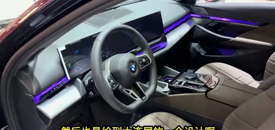 宝马5系汽车仪表盘和中控屏幕展示